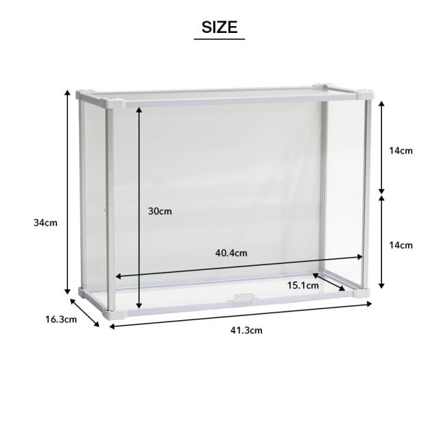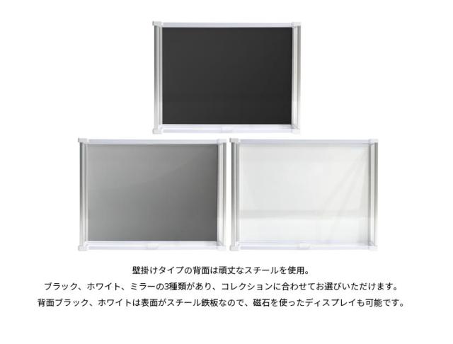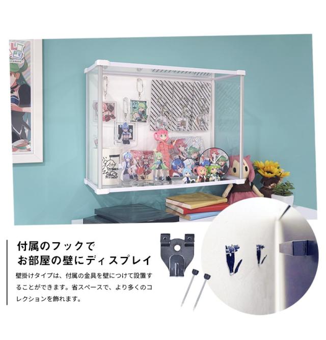【商品仕様】外寸:幅413×奥行163×高さ314mm内寸:幅404×奥行151×高さ300mm本体素材:アクリル、アルミ、スチール、ABS樹脂付属品:壁掛け用金具×2(石膏ボード専用)重量:約2.3kg耐荷重:500g【生産国】日本【組み立て】お客様組み立て品です。プラスドライバーをご用意ください。(所要時間15分)【備考】※本品の落下、破損等による収納物、展示物の破損等に関して当店では責任を負いかねます。※実際の商品の色にできるだけ近づけるよう撮影を行なっておりますが、商品の色はご使用のモニターによって実際の明るさや色と多少異なって見える場合がございます。あらかじめご了承ください。※沖縄・離島については、別途送料お見積りとなります。ご購入前に、当店にお問い合わせください。※各種寸法は概数となり、多少の誤差があることがあります。あらかじめご了承ください。※付属品は商品1台につき同梱されます。複数個またはセットの場合は商品点数に合わせて同梱いたします。※組み立て所要時間は1台あたりの目安の時間です。