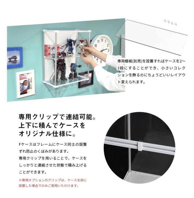 壁掛けも出来る コレクションケース Fケース UVカット 横型 ホワイト(背面ホワイト) 【送料無料】 アクリルケース 壁掛け フィギュアケース ディスプレイケース 日本製 アクリル棚 卓上 マグネット 磁石