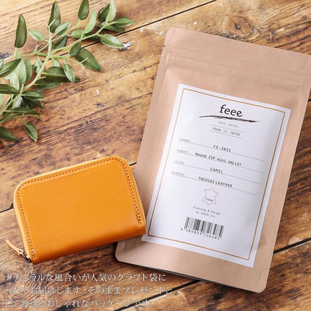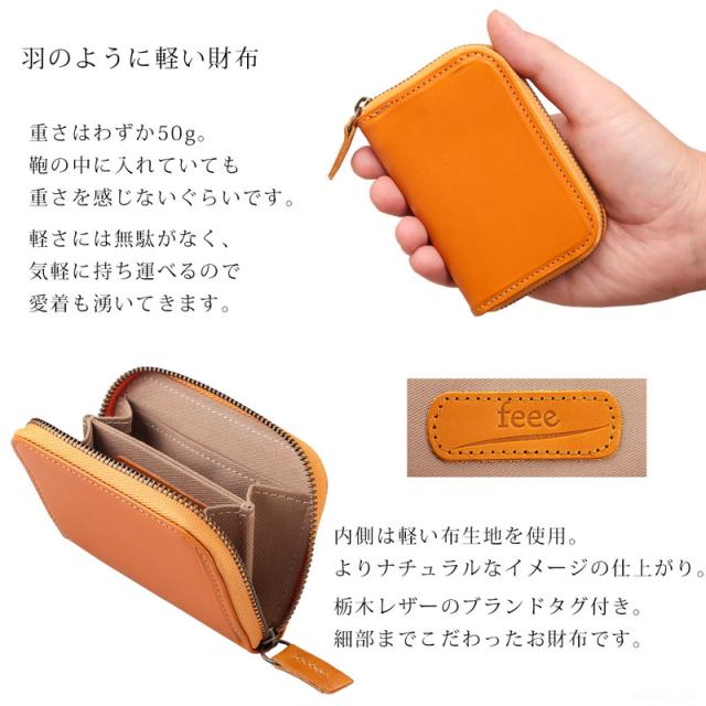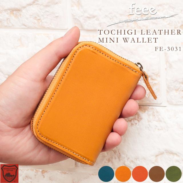 ミニ財布 レディース メンズ 小さい財布 小銭入れ ラウンドファスナー 薄い 栃木レザー 本革 日本製 feee フィー 【FE-3031】mlb ブランド 人気