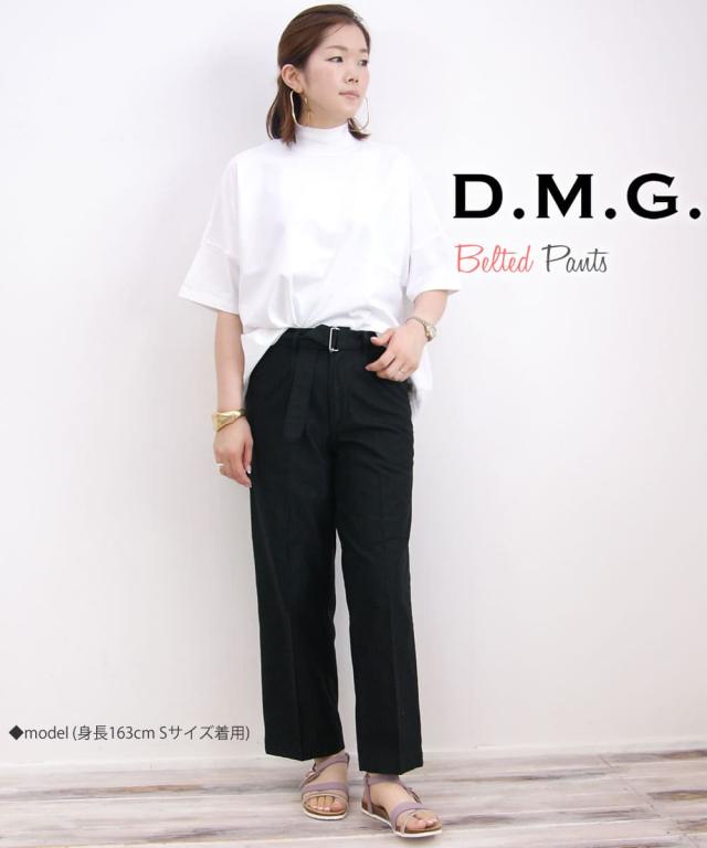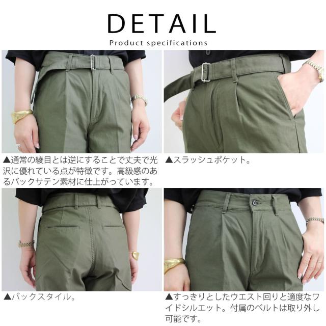 ドミンゴ d.m.g DMG 逆綾バックサテン カラー ワークチノ ベルテッドパンツ 14-0073t 14-073T レディース ワイドシルエット ルーズ ベルト付き アンクルパンツ 送料無料 ディーエムジー おしゃれ アーベン 普段使い 実用的
