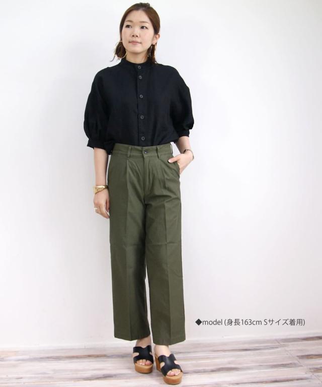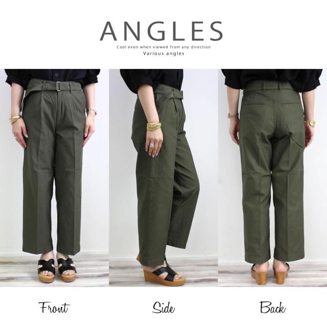 アンクル丈で抜け感があり、足首見せをすることでより女性らしいスタイリングにもなります。