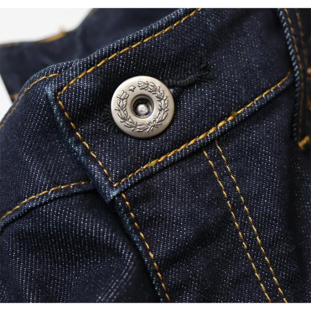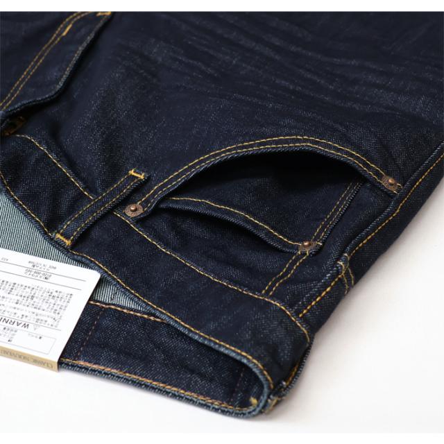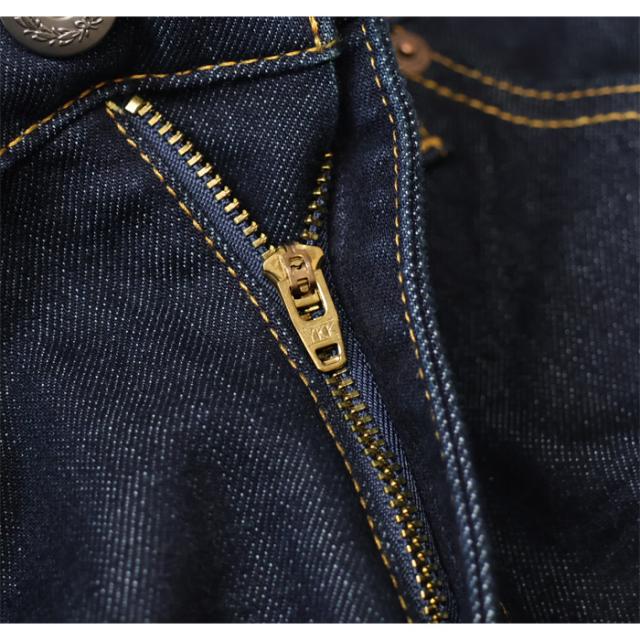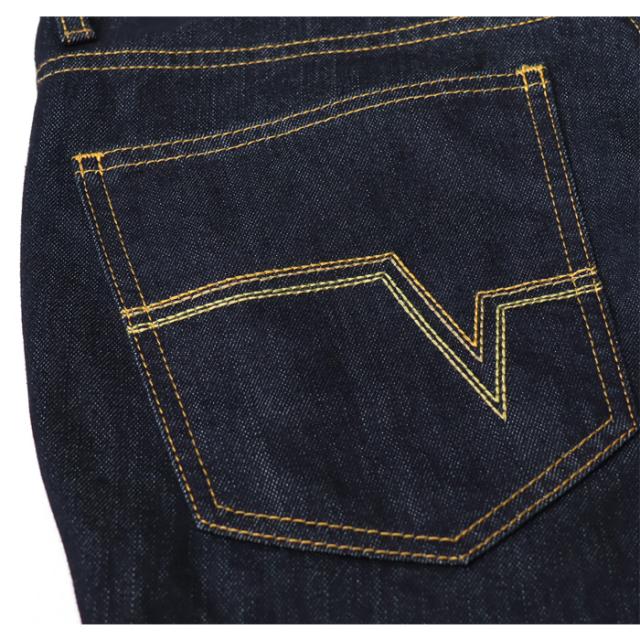 デニムは少し光沢感があり、高級感のある見た目にアップデート。伸縮性は横方向には抑え目になっていますが、斜めにはしっかりと伸びる為、従来の快適さはキープしつつ、穿き伸びしにくい仕様になっています。