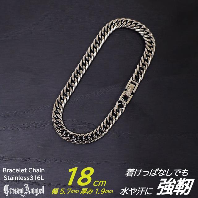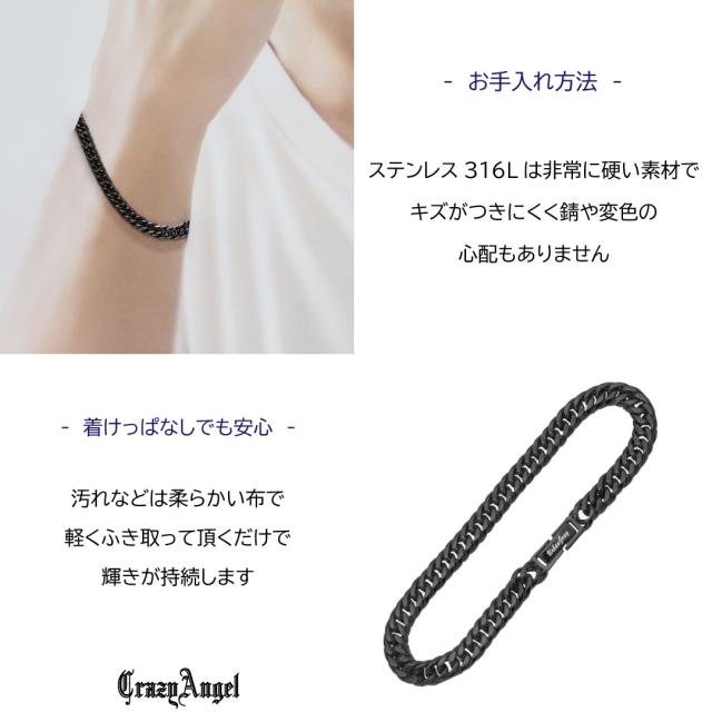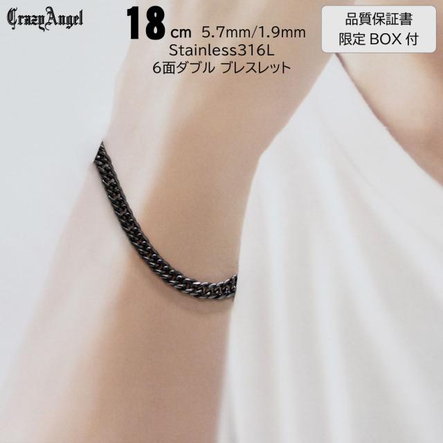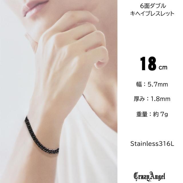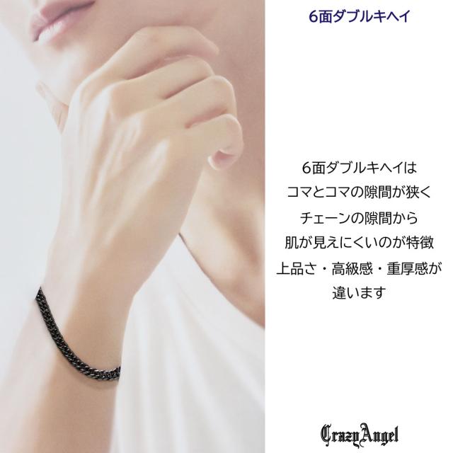 喜平ブレスレット メンズ チェーン ステンレス 6面 ダブル w 18cm キヘイブレスレット キヘイチェーン ブラック 黒 クレイジー エンジェル