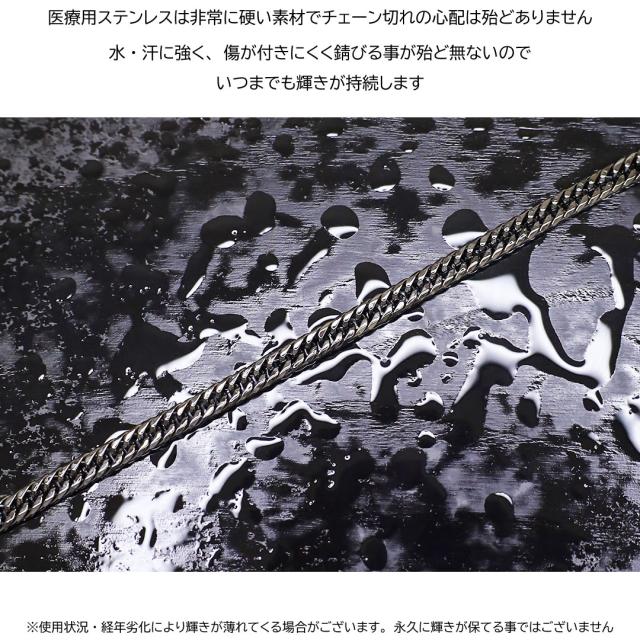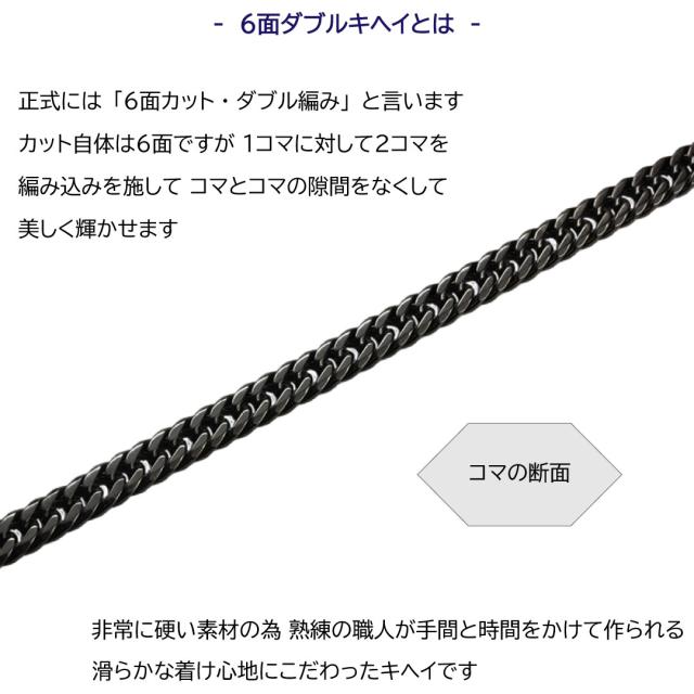 ステンレス素材では流通が少ない6面Wキヘイは、コマとコマの隙間が狭いので、チェーンの隙間から肌が見えにくく、上品さ・高級感が違います。