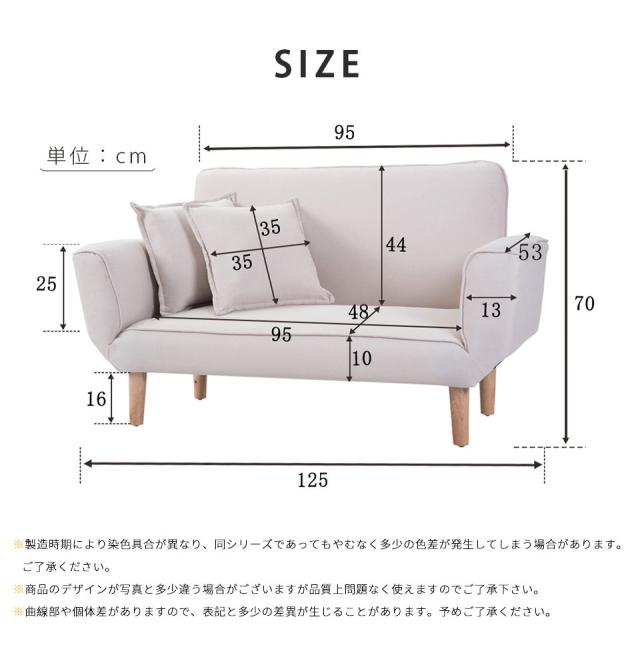 ソファの場合:約幅125×奥行48×高さ70cm 座面高:10cm