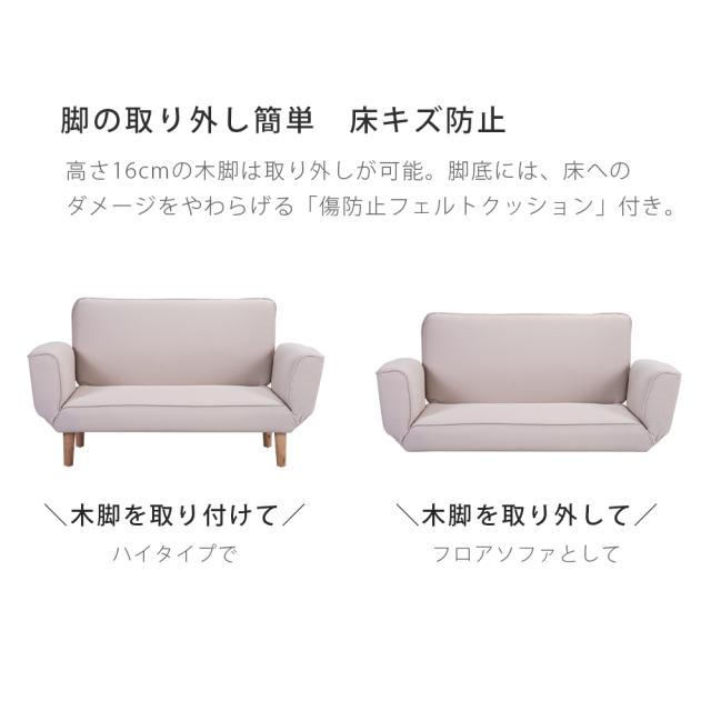 ソファー 2人掛け ソファーベッド コンパクト シングル 折りたたみ リクライニングソファ おしゃれ 北欧 天然木脚 一人暮らし 小さめ 低め フロアーソファ ベンチソファー ローソファ