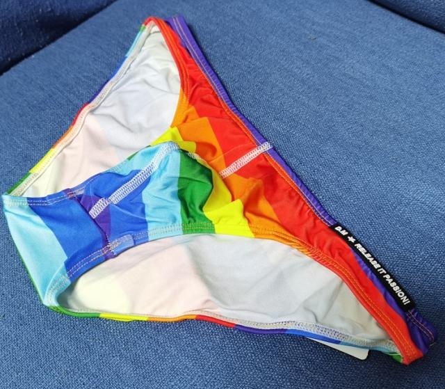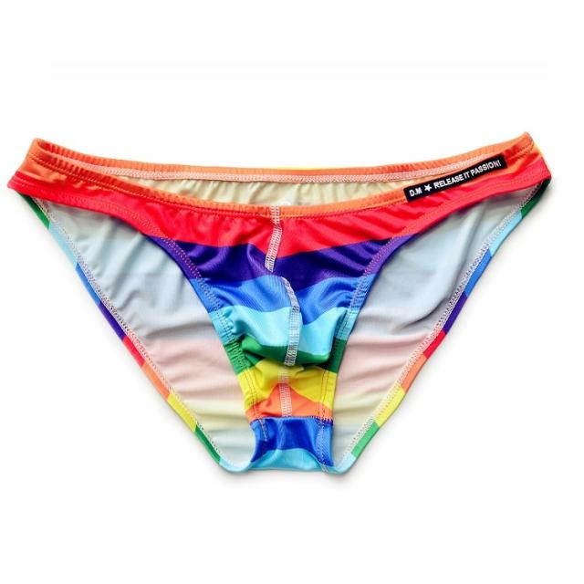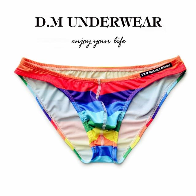 ビキニブリーフ 虹カラー ストレッチ素材 メンズインナー セクシーインナー 男性下着 e-dm3047