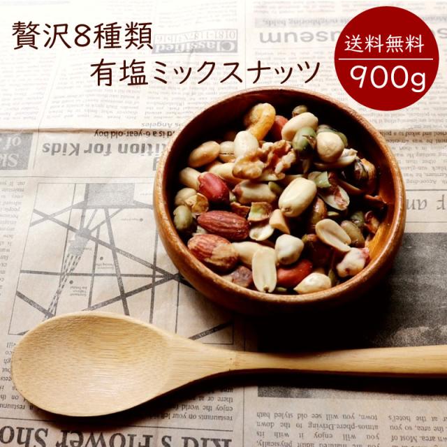 8種 ミックスナッツ 900g 有塩 送料無料 皮つき落花生 アーモンド ピーナッツ くるみ ジャイアントコーン かぼちゃの種 豆菓子 塩味 大容量 業務用 ダイエット プレゼント 健康 おやつ おつまみ うすしお ギフト 人気
