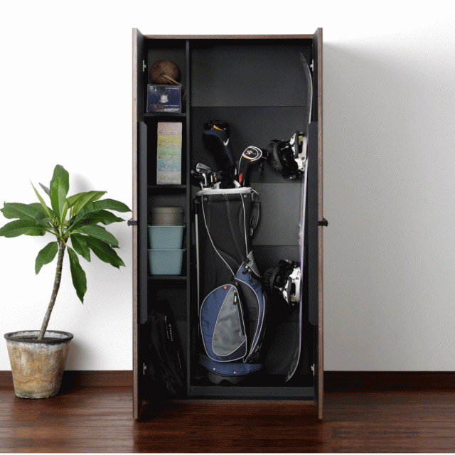 また、全ての棚板が可動式ですので、取り外せばゴルフバッグや掃除機などの背の高いものも収納できます。