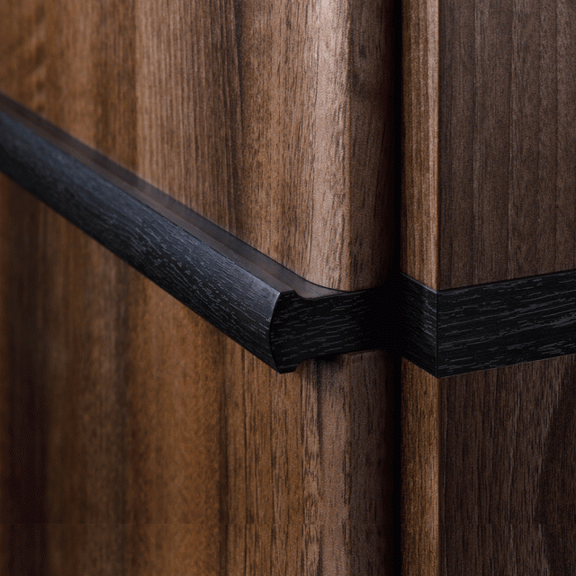 つなぎ目を黒の木目ラインにデザインした取っ手がスタイリッシュでおしゃれです。