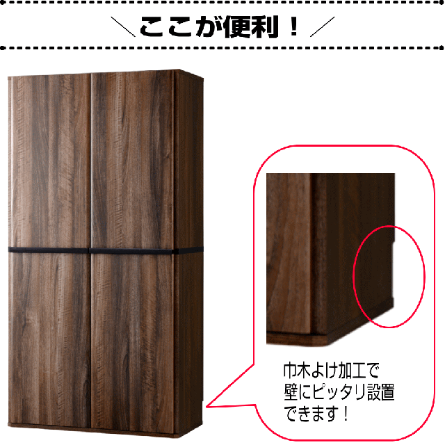 巾木よけ加工で壁にピッタリ設置できます。