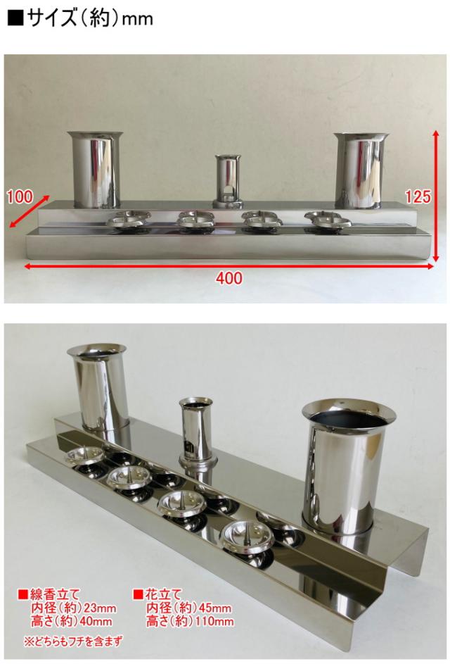 花立て供養セット FHK-1 線香立て 花立て ローソク立て お墓 お墓参り ステンレス製 日本製 仏具用品 墓前用品