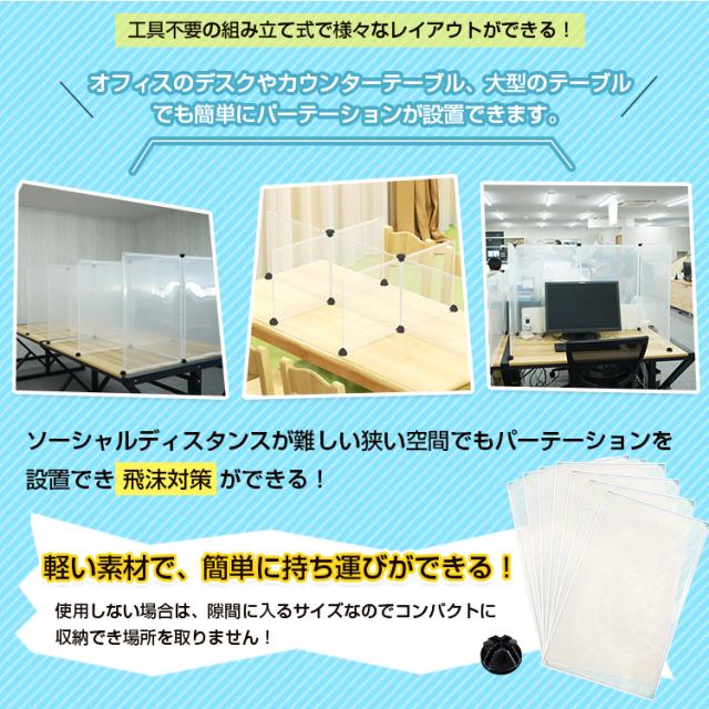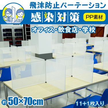 飛沫防止 パーテーション感染予防 PP素材 70×50cm 11+1枚組 デスクパーテーション 半透明 接客 受付 オフィス 学校 組み立て自由 pt021-a