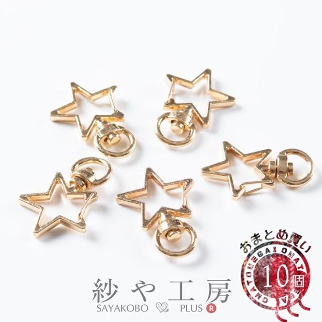 キーホルダーパーツ 星 回転カン付 ゴールド 34mm 10個 10ヶ バッグチャーム ナスカン デザインナスカン スター おしゃれ モチーフ 約3.4cm アクセサリーパーツ パーツ キーリング キーホルダー メタルパーツ 金属パーツ 材料 問屋