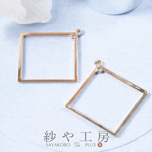 チャーム ダブルカンフレーム スクエア ゴールド 30mm 2個 2ヶ 角 四角 アクセサリーチャーム 菱形 ひし形 シンプル 枠 2カン付 約3cm アクセサリーパーツ パーツ メタルパーツ 金属チャーム 金属パーツ 材料 問屋 ハンドメイド資材 さや工房