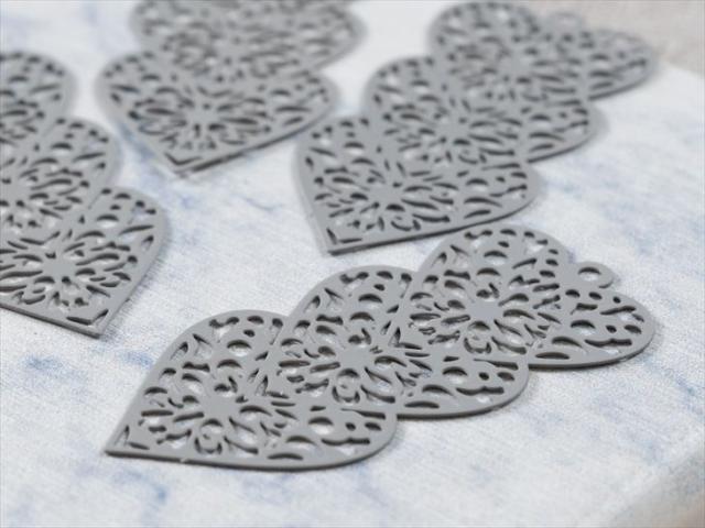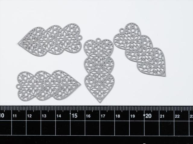 チャーム 透かしパーツ ゴムコーティング 三連ハート グレー 45mm 4個 4ヶ カン付き 透かし模様 アクセサリーチャーム 約4.5cm アクセサリーパーツ 材料 問屋 ハンドメイド資材 ラバーチャーム レース さや工房 手作り