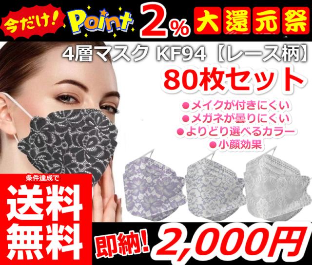 【ゼッタイに使ってほしい!4層構造 大人気 息がしやすい 立体マスク レース柄 80枚セット 送料無料!】 KF94 マスク 立体マスク KF94マスク