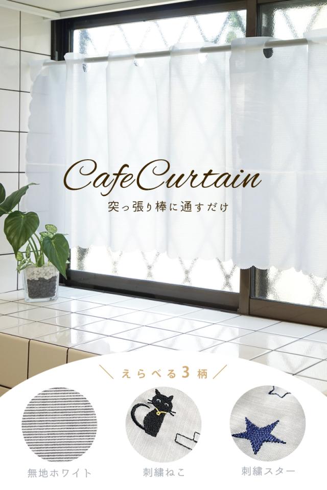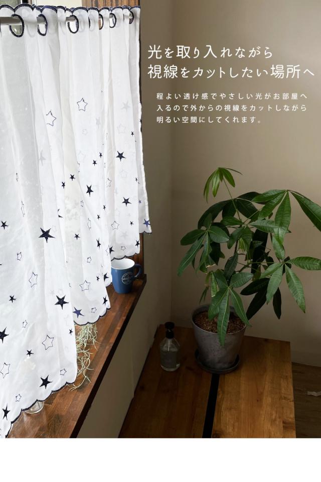 カフェカーテン 窓 丈 目隠し 突っ張り棒 仕切り 刺繍 星柄 無地 ナチュラル 100×45 100×75 145×45 145×75 カーテン ロング丈 北欧 おしゃれ ネコポス便 送料無料
