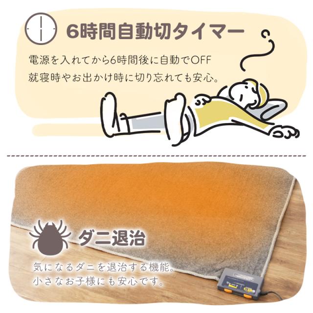 切り忘れタイマー付き(6時間)、ダニ退治機能付き