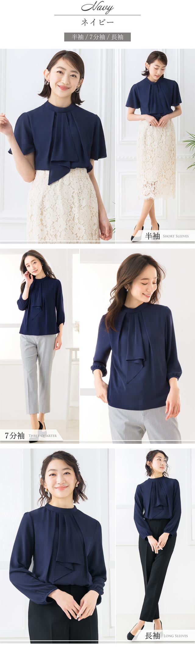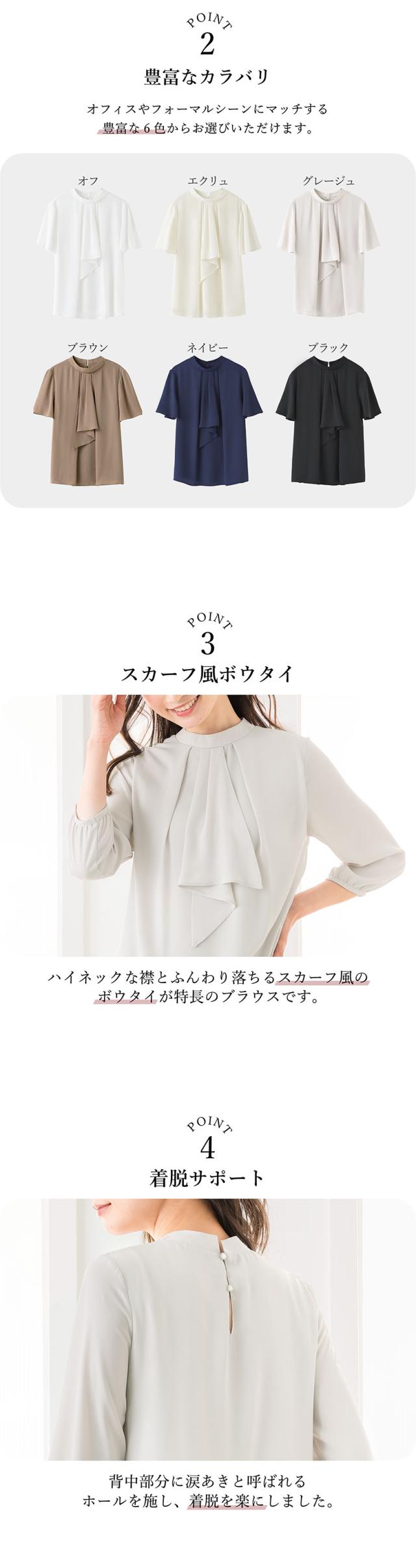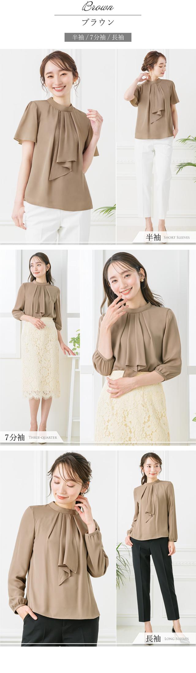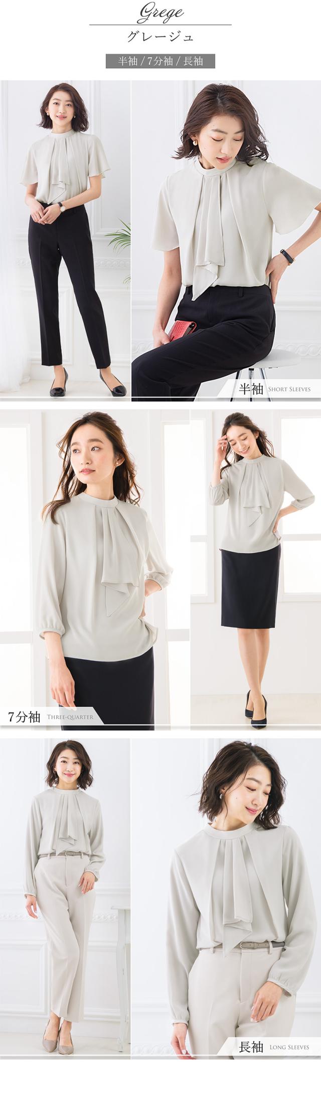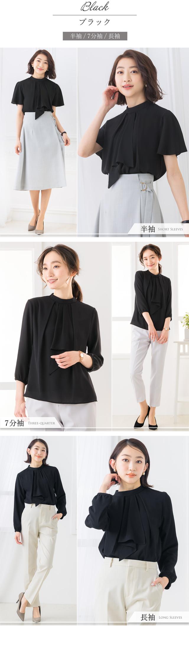ブラウス レディース オフィス ボウタイ フォーマル スーツ インナー トップス 7分袖 半袖 長袖 無地 ビジネス 通勤 入学式 卒園式 1/1