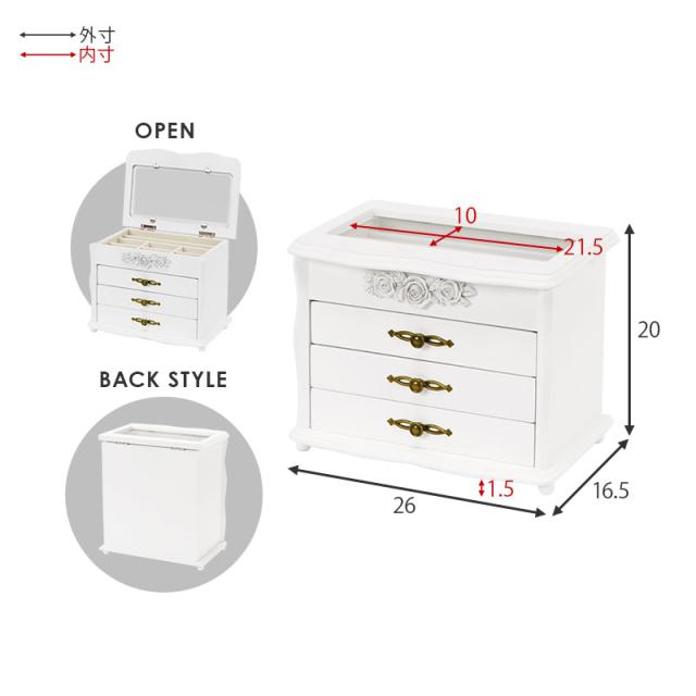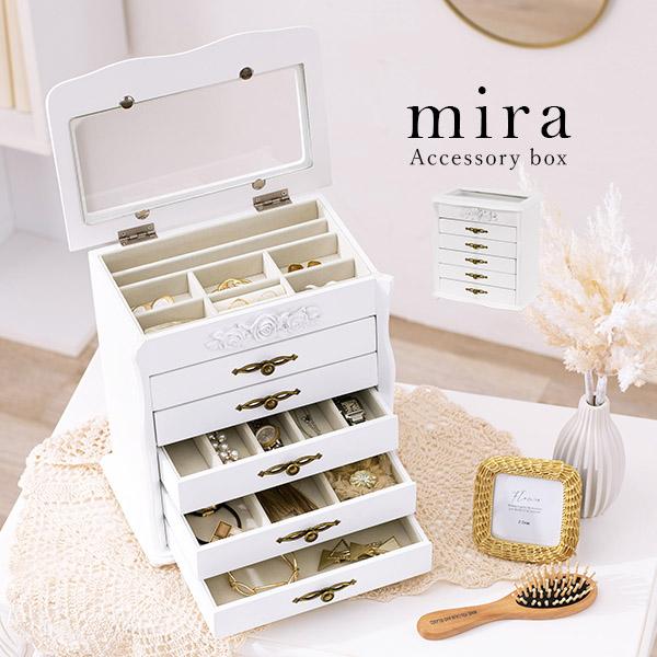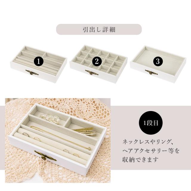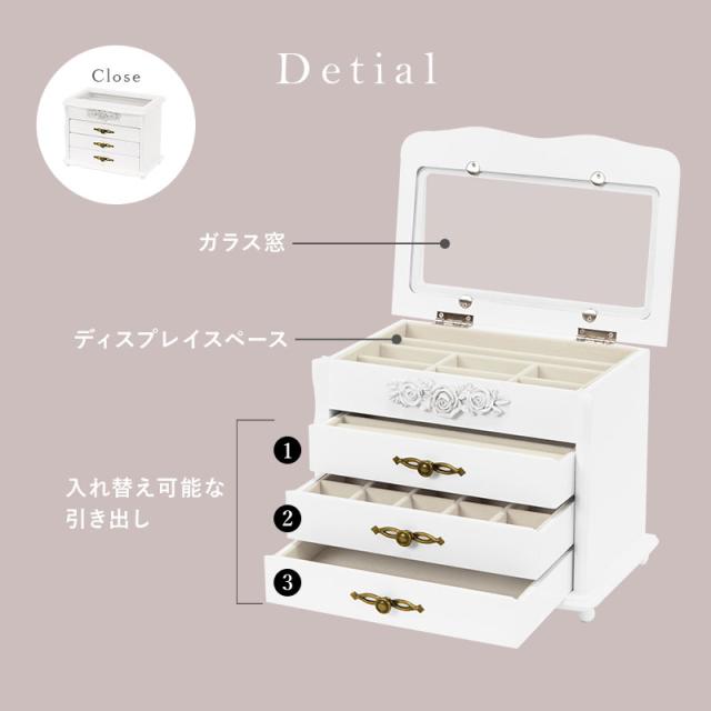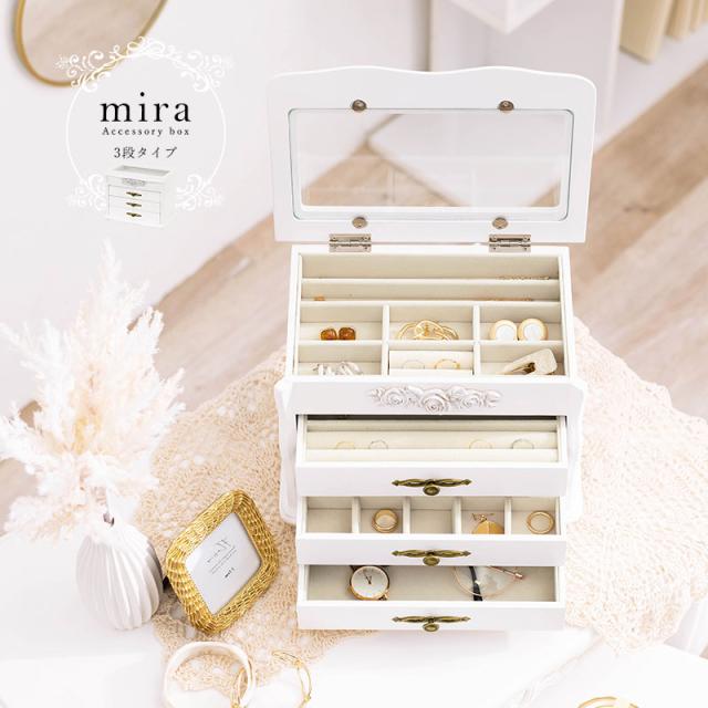 ジュエリーボックス 大容量 木製 収納 可愛い ガラス アクセサリーボックス かわいい ケース おしゃれ 可愛い宝石箱 白 3段 ミラ ジュエリーボックス 大容量 ガラス 収納 可愛い mira