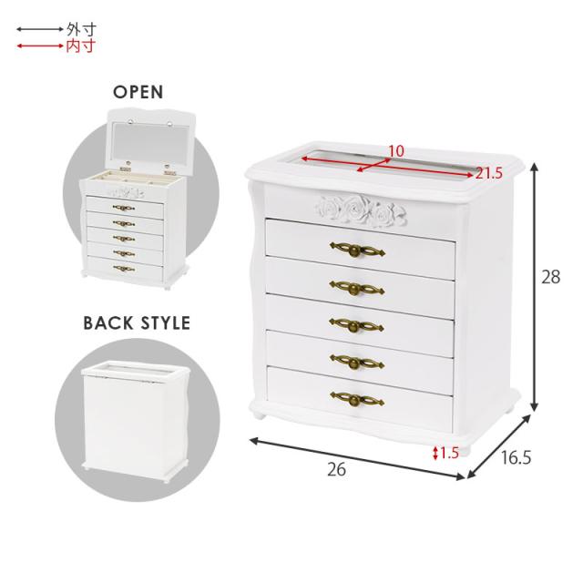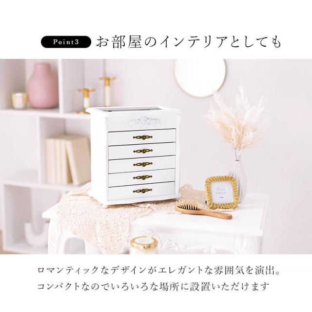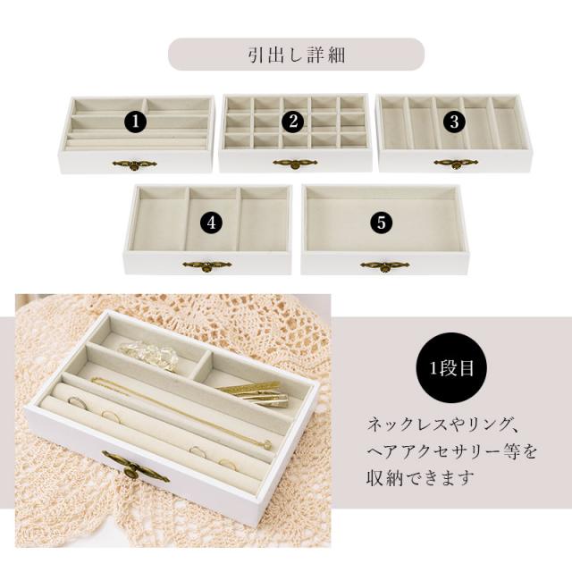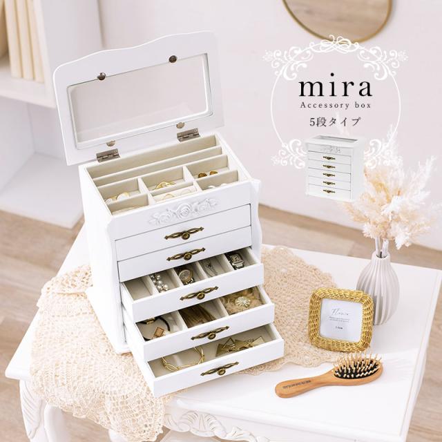 ジュエリーボックス 大容量 木製 収納 可愛い ガラス アクセサリーボックス かわいい ケース おしゃれ 可愛い宝石箱 白 5段 ミラ ジュエリーボックス 大容量 ガラス 収納 可愛い mira