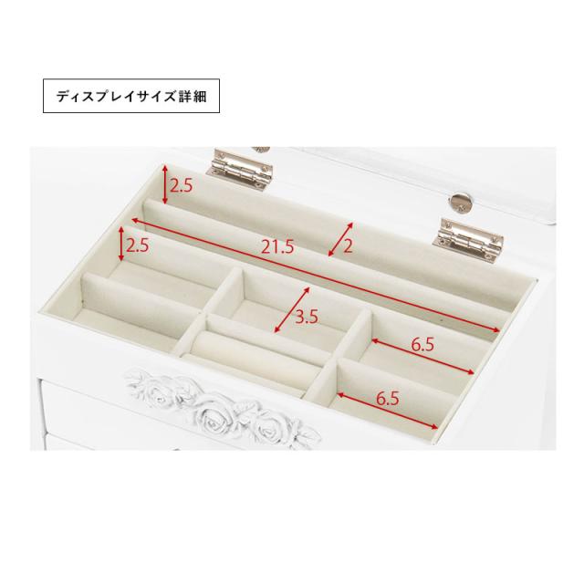 蓋はガラス窓になっているため、お気に入りのアクセサリーを並べてジュエリーショップのようなディスプレイを楽しめます。