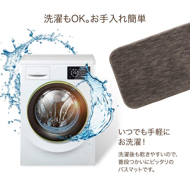 【洗濯もOK】いつでも手軽に洗濯ができ、洗濯後も乾きやすいので、普段使いにピッタリのバスマットです。