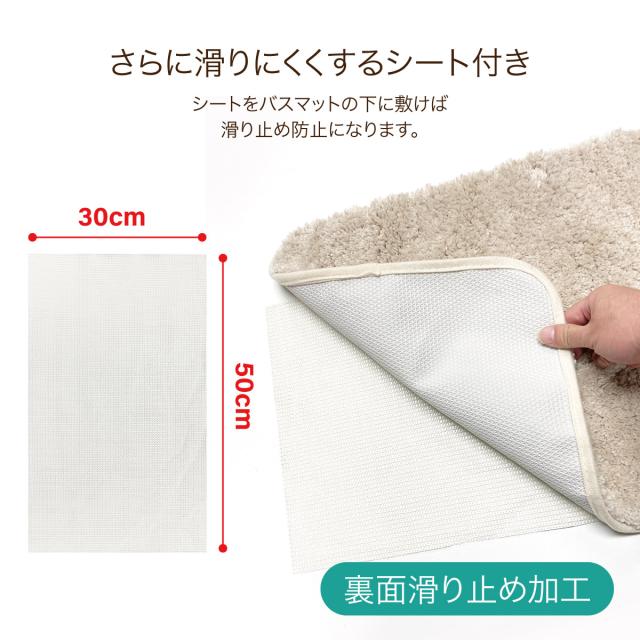 【さらに滑りにくくするシート付】シートをバスマットの下に敷けば、さらに滑り止め効果が出ます。