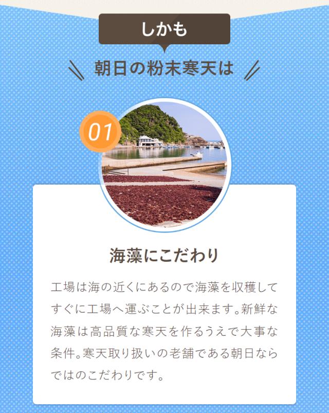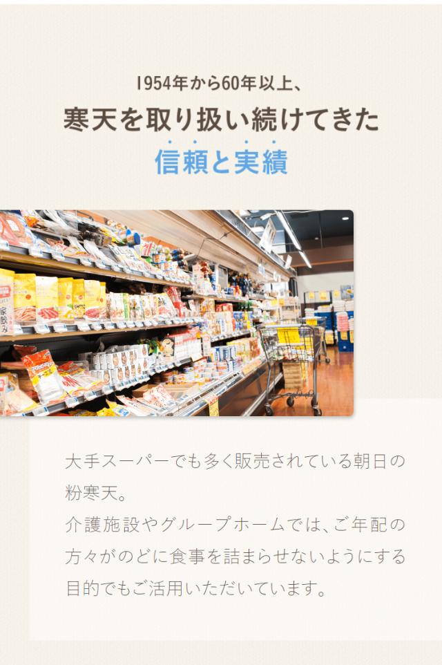 NATULAND朝日の粉かんてんは50数年の経験と品質にこだわった商品をお客様にご提供しております。スティックタイプは使いきりサイズなので、お料理などにますます利用しやすくなっております。また、40gや200gのお徳用サイズも、変わらぬご愛顧を頂いております。