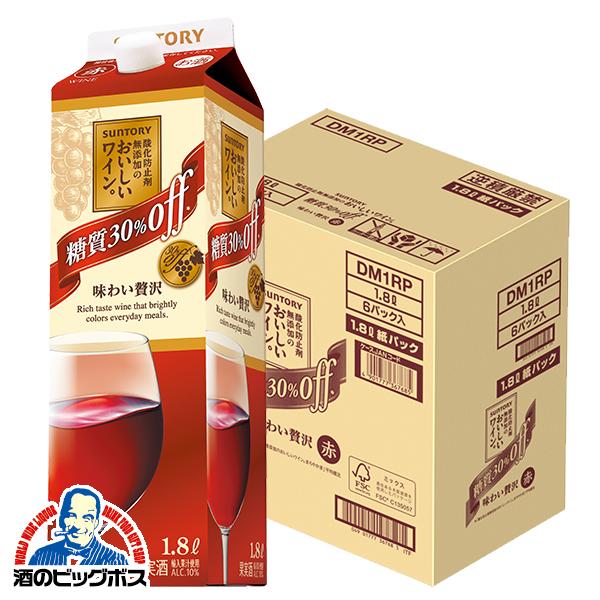 1.8L 6本 送料無料 サントリー 酸化防止剤無添加のおいしいワイン 糖質30%オフ 赤 パック 1800ml×1ケース/6本(006)『ESH』