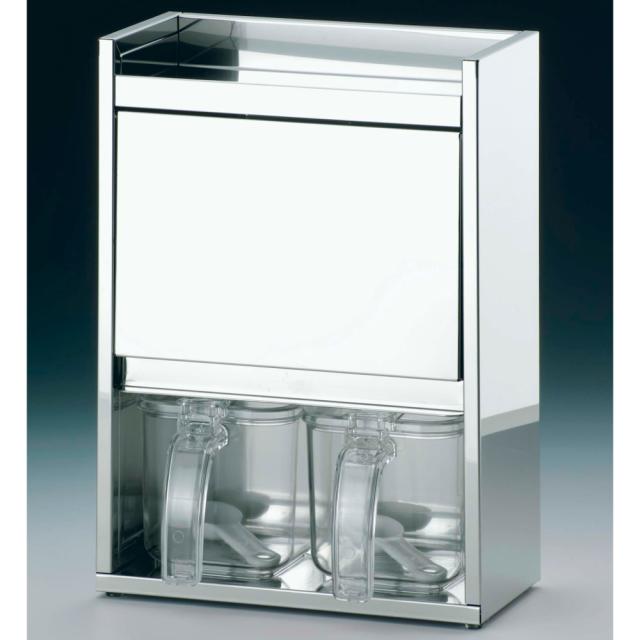 ・材質:(本体)ステンレス鋼、(ストッカー)アクリル樹脂、(スプーン)ポリプロピレン、(足ゴム)ポリウレタン