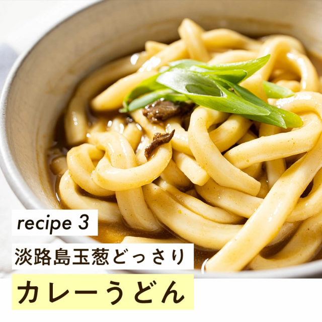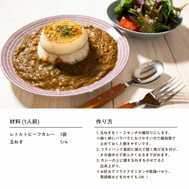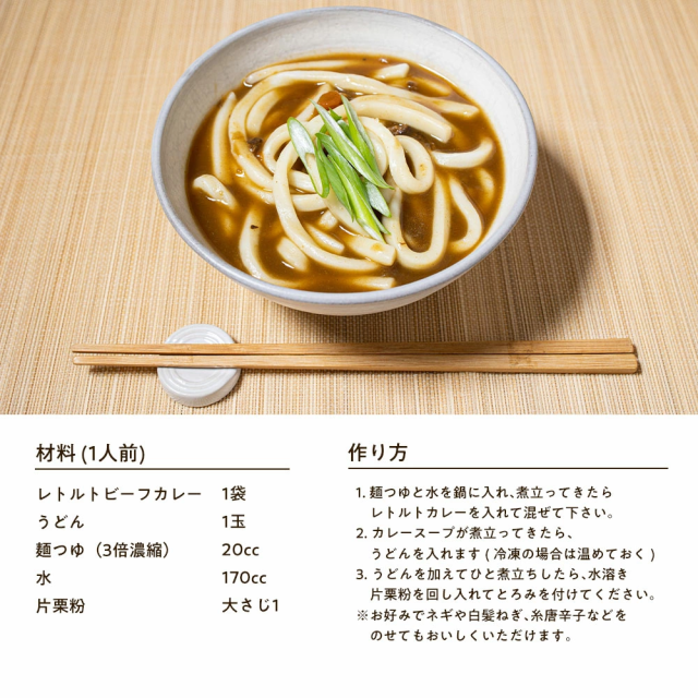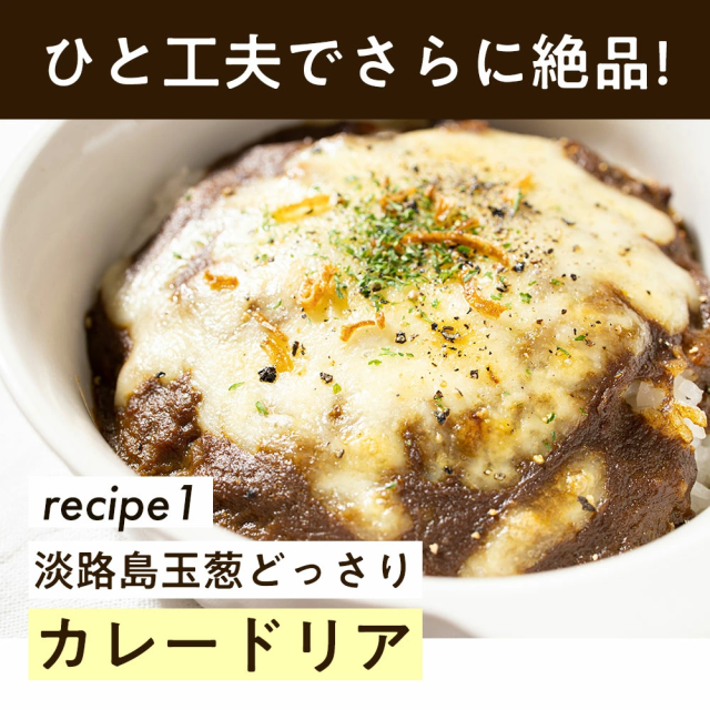 ソテーオニオン(玉葱(淡路島産))、小麦粉、牛肉(淡路島産)、人参、食用油脂、砂糖、カレー粉、食塩、トマトケチャップ、チキンエキス、チャツネ、リンゴピューレ、澱粉、香辛料/調味料(アミノ酸等)、カラメル色素、酸味料、香料、(原料の一部に小麦・牛肉・大豆・鶏肉・りんごを含む)