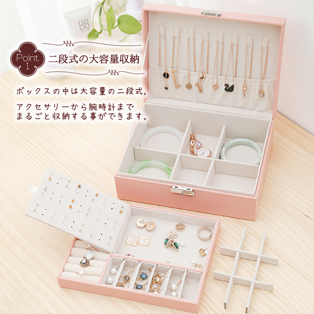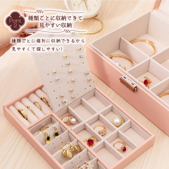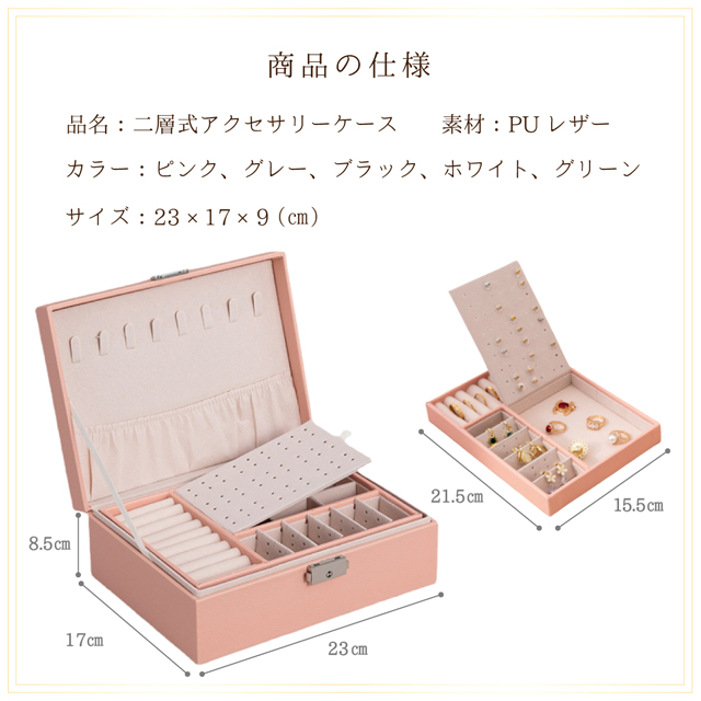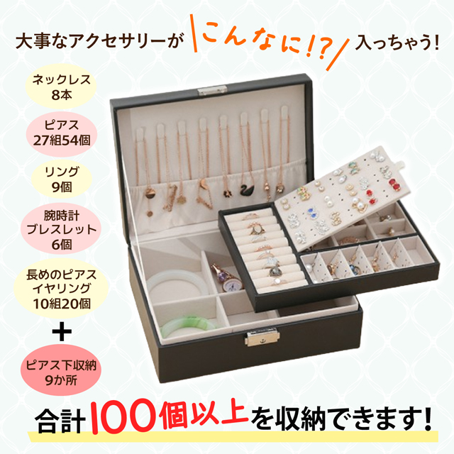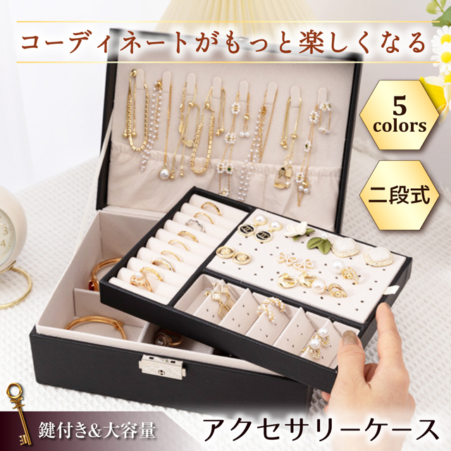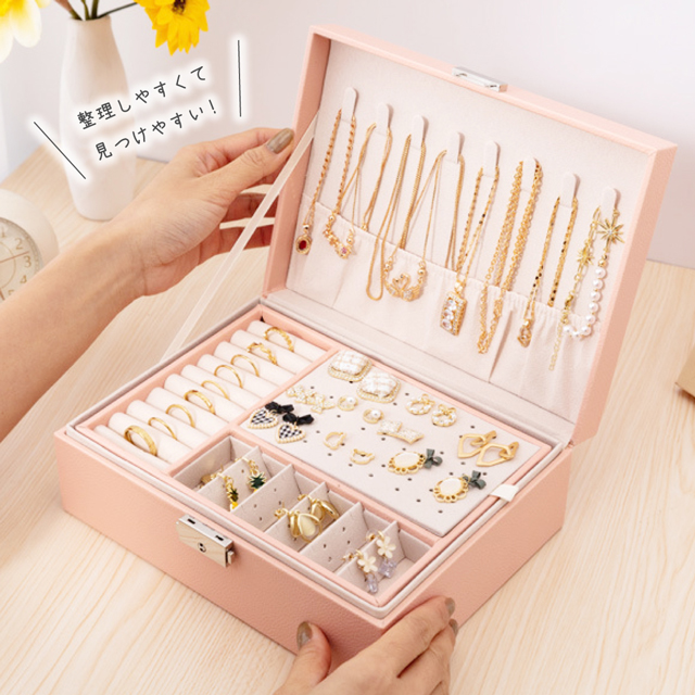 「クーポン配布中」2段 ジュエリーボックス レザー ジュエリーケース アクセサリーボックス アクセサリーケース アクセサリートレイ 宝石箱 ネックレス 収納ボックス 小物入れ 鍵付き 大容量収納 母の日 敬老の日 ギフト