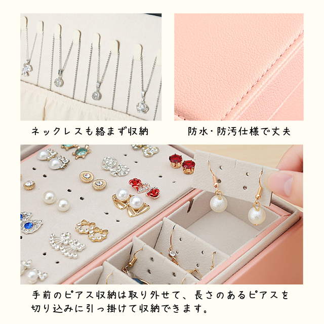 - 注文して直ぐに届きました。 お値段の割に作りもしっかりしていて、容量も多く満足しています。 ピアスの収納か多いのは嬉しいです。 欲を云えばフープタイプも留めて収納出来たら尚よかったなと思います。