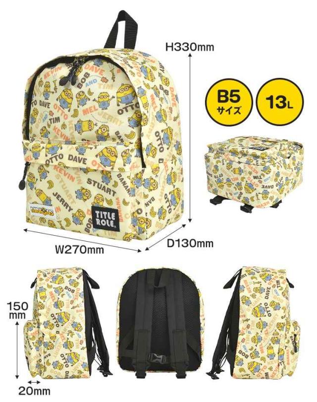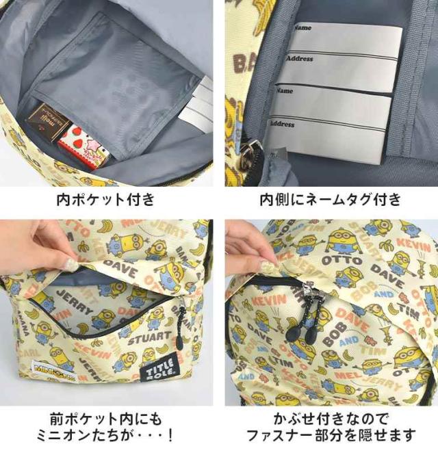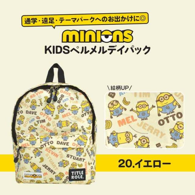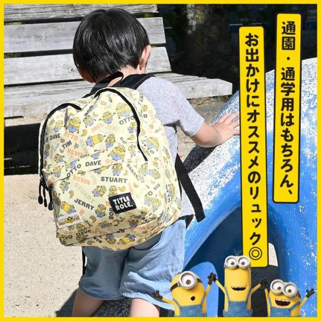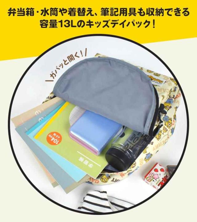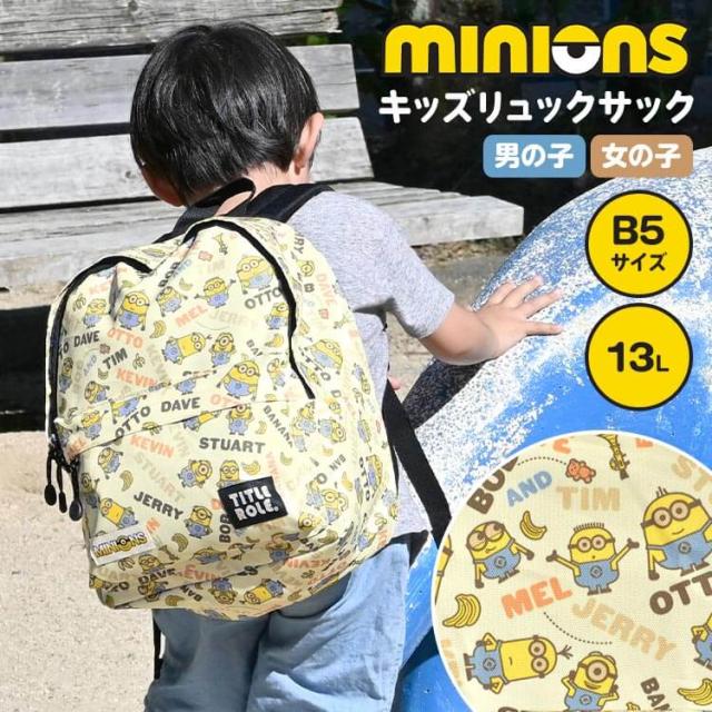 ミニオン リュックサック リュック キッズ 男の子 女の子 子供 小学生 保育園 幼稚園 通園 通学 遠足 お泊り保育 バッグ デイパック 13L A4 B5 収納 大容量 ネームタグ ハーネス チェストベルト ずれ防止 イエロー キャラクター ボブ ティム 入園 入学祝い 防災 20769058