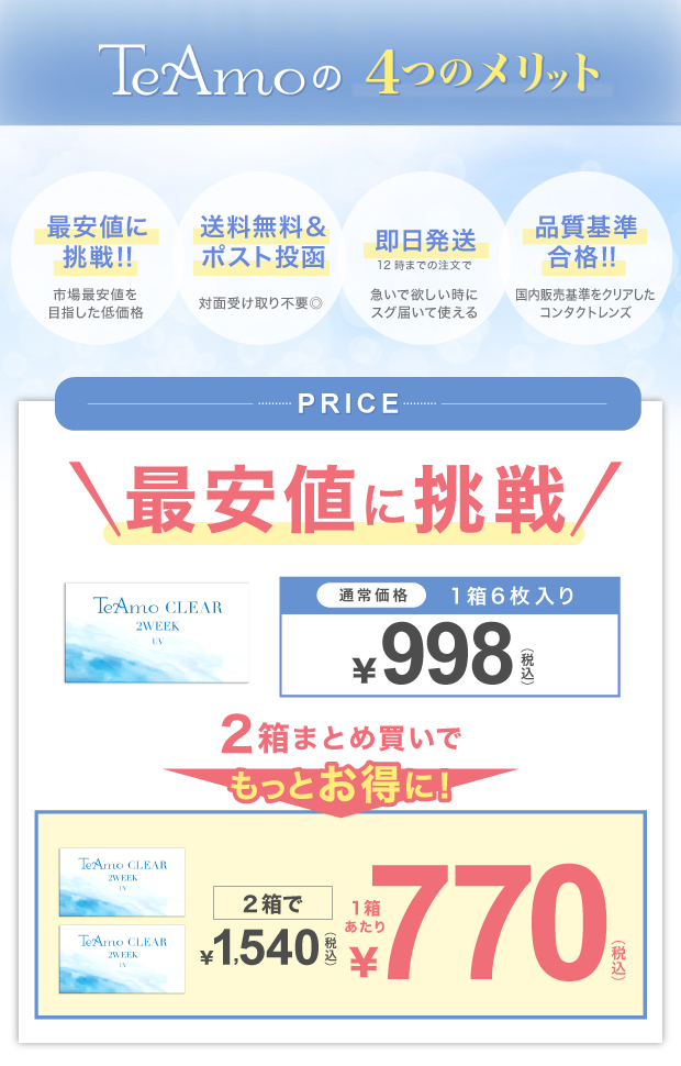 コンタクトレンズ 2week 2箱まとめ買い コンタクトTeAmo CLEAR 2week 1箱6枚入 送料無料 ソフトコンタクトレンズ 2週間 クリアコンタクト 2ウィーク UVカット ティアモ