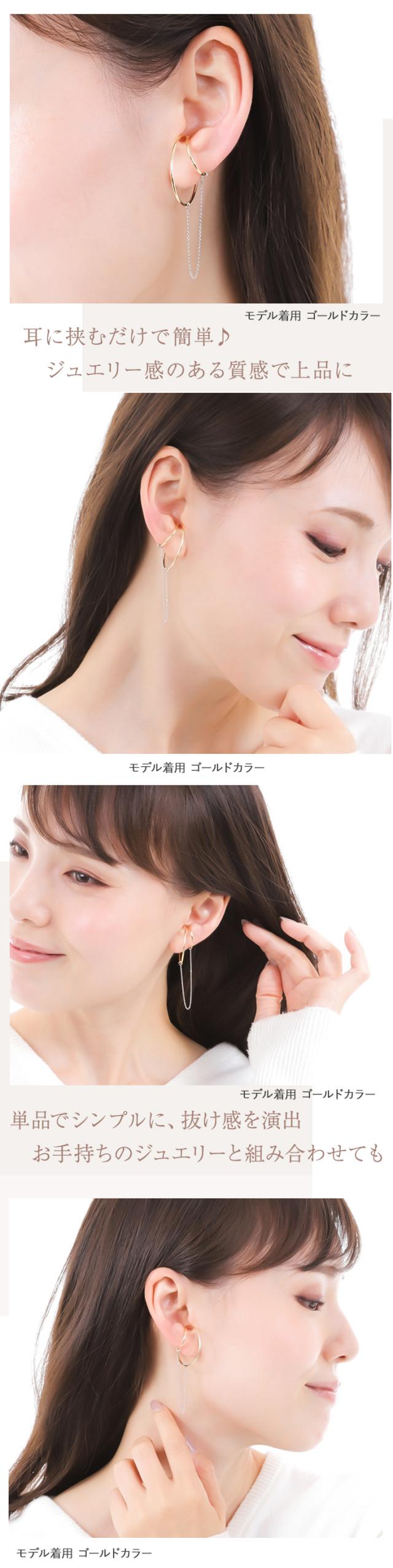イヤーカフ 金属アレルギー対応 レディース イヤリング イヤカフス イヤカフ チェーン 大ぶり ノンホールピアス 片耳 シンプル はさむ 18K 地金 イヤークリップ イヤーフック 華奢 痛くない ジュエリー 誕生日 クリスマス プレゼント 女性 アクセサリー