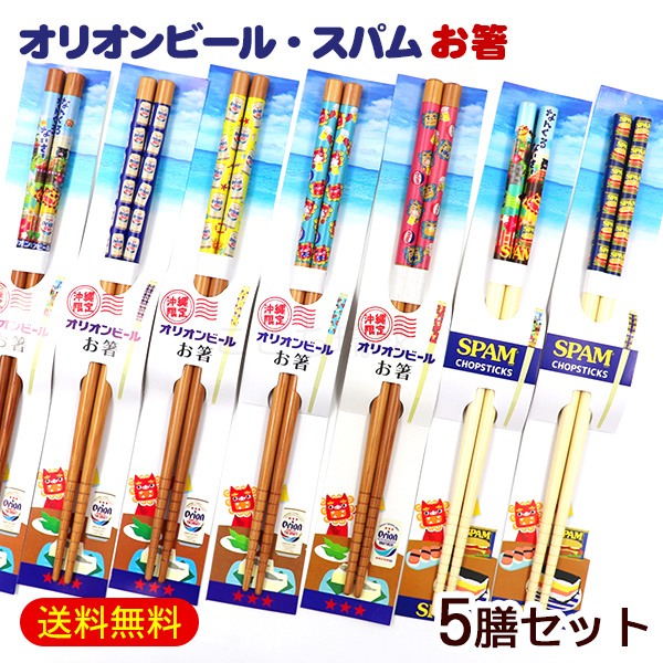 お箸 5膳セット(オリオンビール・スパム) /沖縄お土産 雑貨 グッズ【M便】