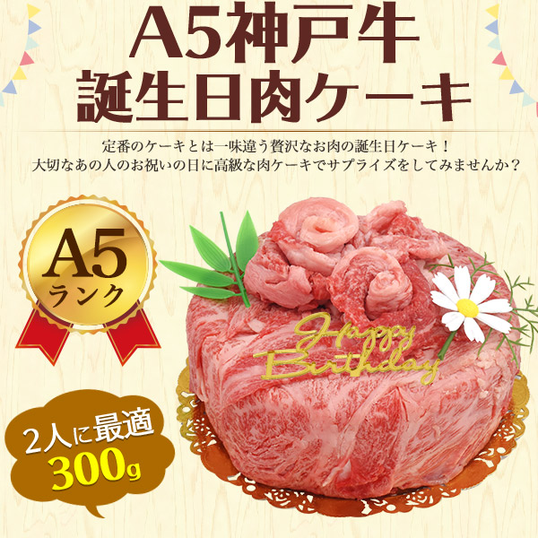 肉 ギフト A5 神戸牛 誕生日肉ケーキ 2人用 300g 最高級A5ランク 肩ロース しゃぶしゃぶ すき焼き用スライス肉 焼肉 2種食べ比べセット 合計300g 2人前 5号サイズ 送料無料 黒毛和牛 牛肉 お肉 誕生日ケーキ 甘いもの苦手 変わり種 2025年 お歳暮 ギフト