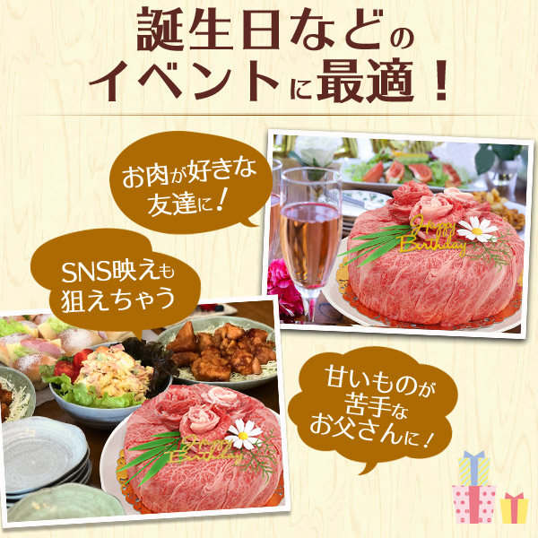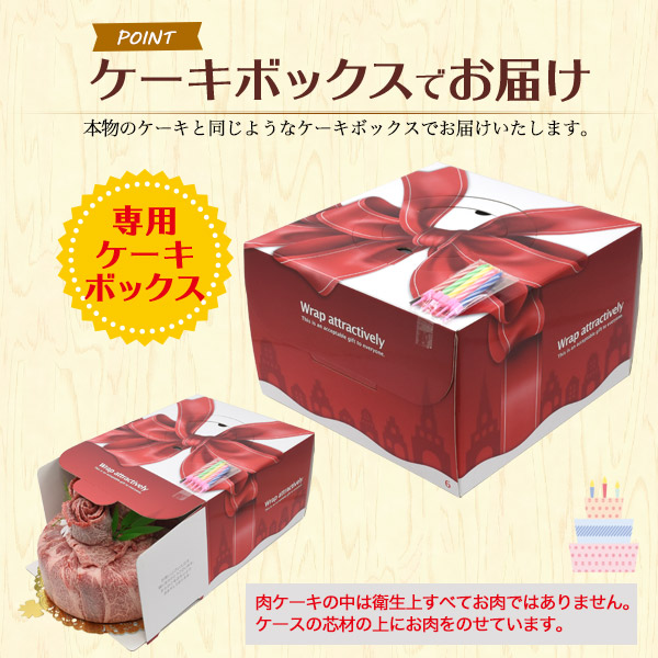 【注意】※肉ケーキの中は衛生上すべてお肉ではありません。ケースの芯材の上にお肉をのせています。※生肉製品は性質上、形状・霜降り・大きさなどが画像と異なる場合がございます。予めご了承下さい。
