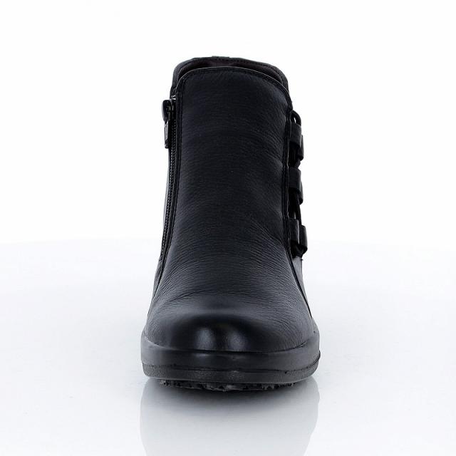 日本製、雪寒地向け本革コンフォートブーツです。表革はガーメントレザーで履くほどに足に柔らかくフィットします。ソールには一般的なガラス繊維に加え、超微細なウールガラス繊維を配合した防滑ラバー「3Dナノスペラン(R)」を採用しています。ラバー本来の柔らかさは維持したまま、防滑効果を約15%向上させています。【ガーメントレザー】天然皮革で柔軟性を持たせるため揉み加工を施したソフトレザーです。※色のばらつきや革の表面にできるシワやしわ模様の不均一さは動物の皮膚が持つ自然な特徴で、革が天然素材である為に革の加工や染色の過程で起こることがあります。 【ベステック(R)ソール】ウレタンの劣化しやすい弱点を大きく改善した素材で、軽量性、弾力性、防滑性に富んだソールです。【撥水加工】アッパーに撥水加工を施しています。※防水仕様ではありません。【足なり設計】【スペラン(R)】(ウィズ)3E (素材:アッパー) 天然皮革(ステア) (底材) PU/3Dナノスペラン(R) (原産地) JAPAN (重量)片足約285g/23.0cm時 (ヒール高)約4.5cm/23.0cm時 (検索用キーワード)レディース、22.0cm 22.5cm 23.0cm 23.5cm 24.0cm 24.5c