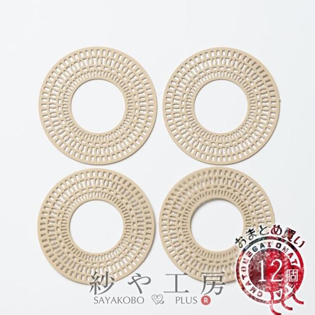 つなぎパーツ 透かしパーツ ゴムコーティング ベージュ 38mm 12個 ラウンド コネクター コネクターパーツ パーツ 約3.8cm アクセサリーパーツ パーツ ボヘミアン 透かし模様 ラバーパーツ ラバーコーティング 大振り さや工房 手作り