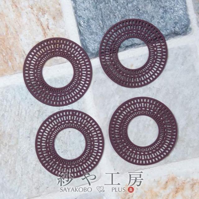 つなぎパーツ 透かしパーツ ゴムコーティング プラム 38mm 4個 4ヶ ラウンド コネクター コネクターパーツ パーツ 約3.8cm アクセサリーパーツ パーツ ボヘミアン 透かし模様 ラバーパーツ ラバーコーティング カラフル シンプル 大振り さや工房 手作り