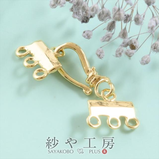 つなぎパーツ 金属アレルギー対応 3カン付 フック ゴールド 30mm 1個 コネクター 両カン フックチャーム アクセサリーパーツ