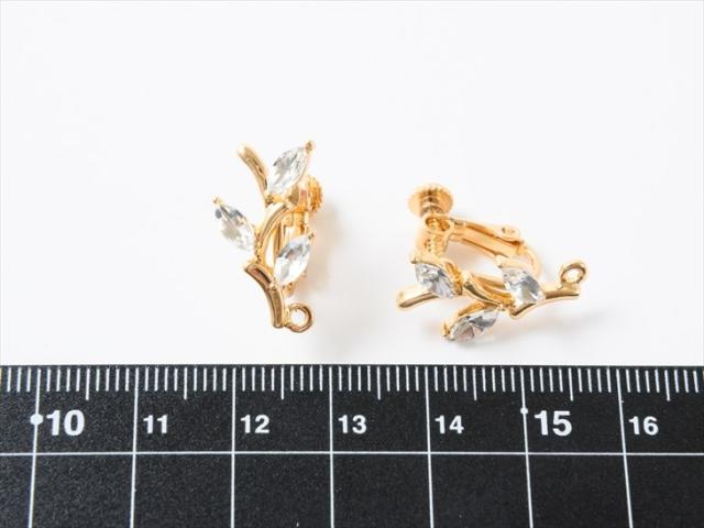 小枝にストーンの葉っぱが付いたイヤリングパーツです。
