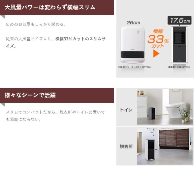 ヒーター セラミックヒーター 1年保証 人感センサー アイリスオーヤマ JCH-12TDS1 暖房 セラミックファンヒーター 省エネ 節電 人感センサー付き大風量セラミックファンヒータースリム スリム 大風量 ファンヒーター 温風 脱衣所 送料無料