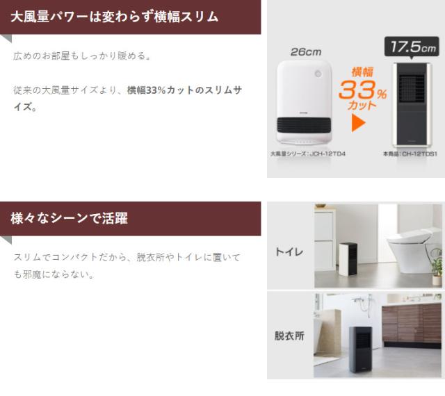 ヒーター セラミックヒーター 1年保証 アイリスオーヤマ 暖房 CH-12TDS1 セラミックファンヒーター 省エネ 大風量セラミックファンヒータースリム ターボヒートスリム TURBOHEATSlim 大風量 温風 セラミック 送料無料