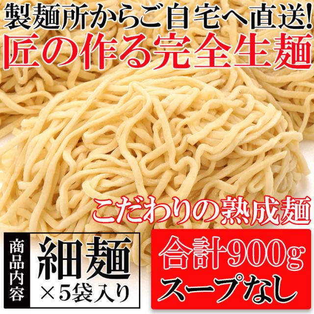 【全国送料無料】製麺所直送!熟成「完全生麺」細麺180g×5袋 合計900g/ポスト投函