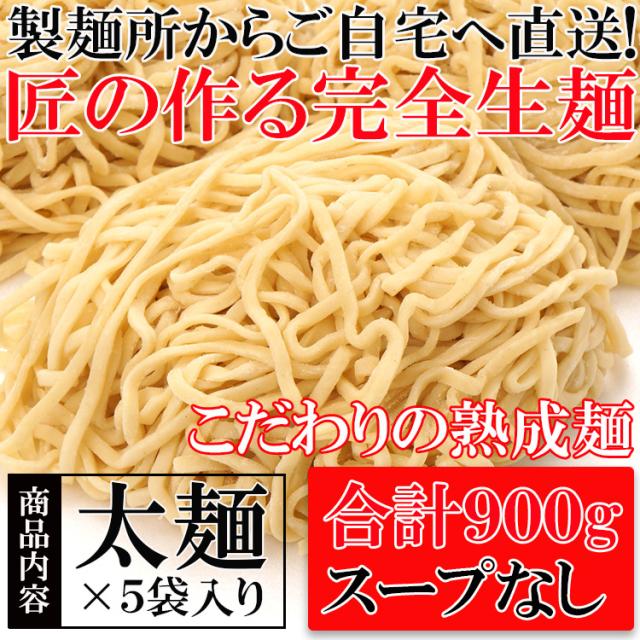 【全国送料無料】製麺所直送!熟成「完全生麺」太麺180g×5袋 合計900g/ポスト投函